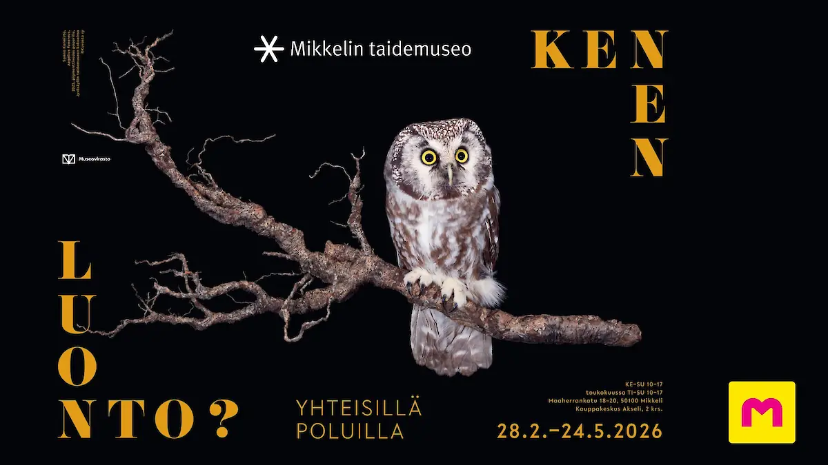 Kenen Luonto? – Yhteisillä poluilla -näyttely avautuu yleisölle Mikkelin taidemuseossa lauantaina 28.2.2026. Näyttelyssä luonnostellaan kestävää kanssakulkijuutta elonkirjon kanssa ja samalla rohkaistaan pohtimaan käsityksiämme luonnosta ja sen arvosta. Kenen Luonto? – Yhteisillä poluilla 28.2.–24.5.2026 Mikkelin taidemuseossa